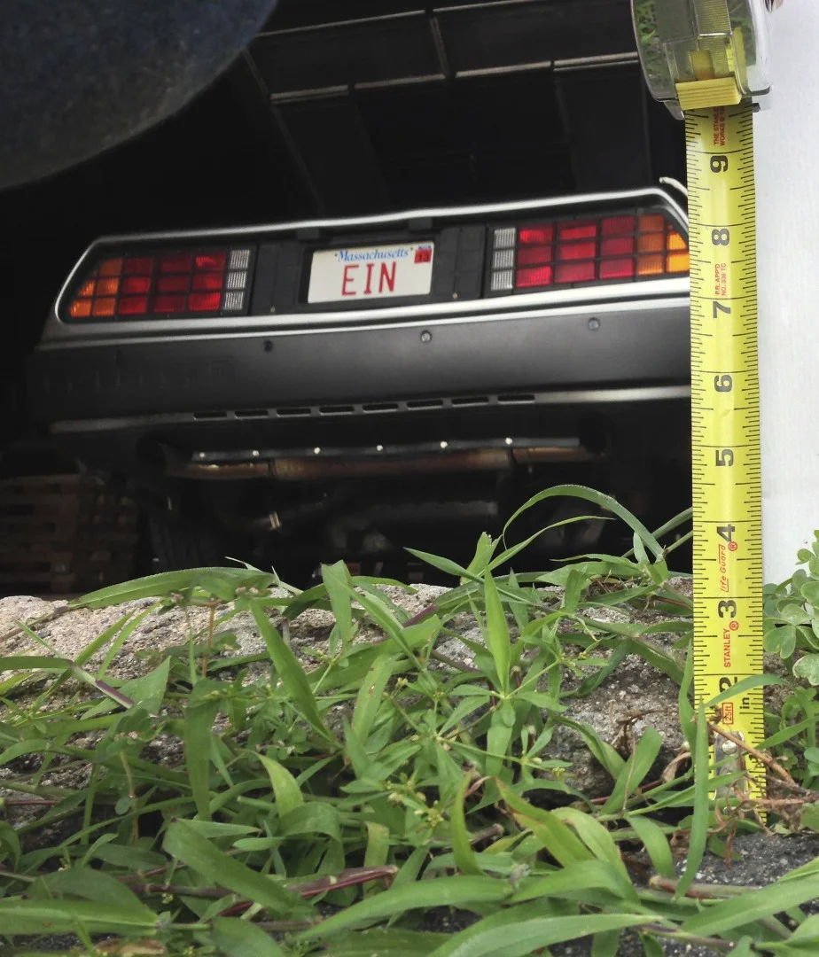 That three inch lip was a bit of a problem. When I finally cleared it and slammed on the brakes, I was maybe two inches from hitting the bumper of the DeLorean. I had pushed the transmission out of the way of the truck, but apparently not quite far enough -- the bumper snapped the handle off the dipstick. That's easy to replace, and no other damage was done.
