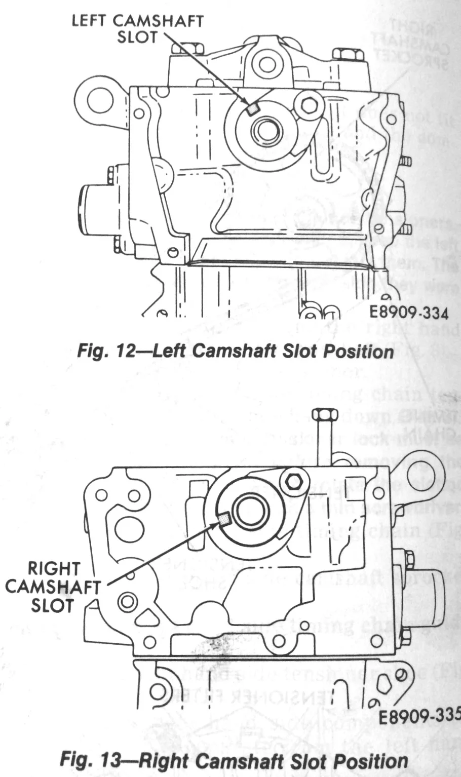 Camshaft slot alignements for installation, from the Premier/Monaco Manual. Remember that "left" means "passenger side" and "right" means "driver's side".
