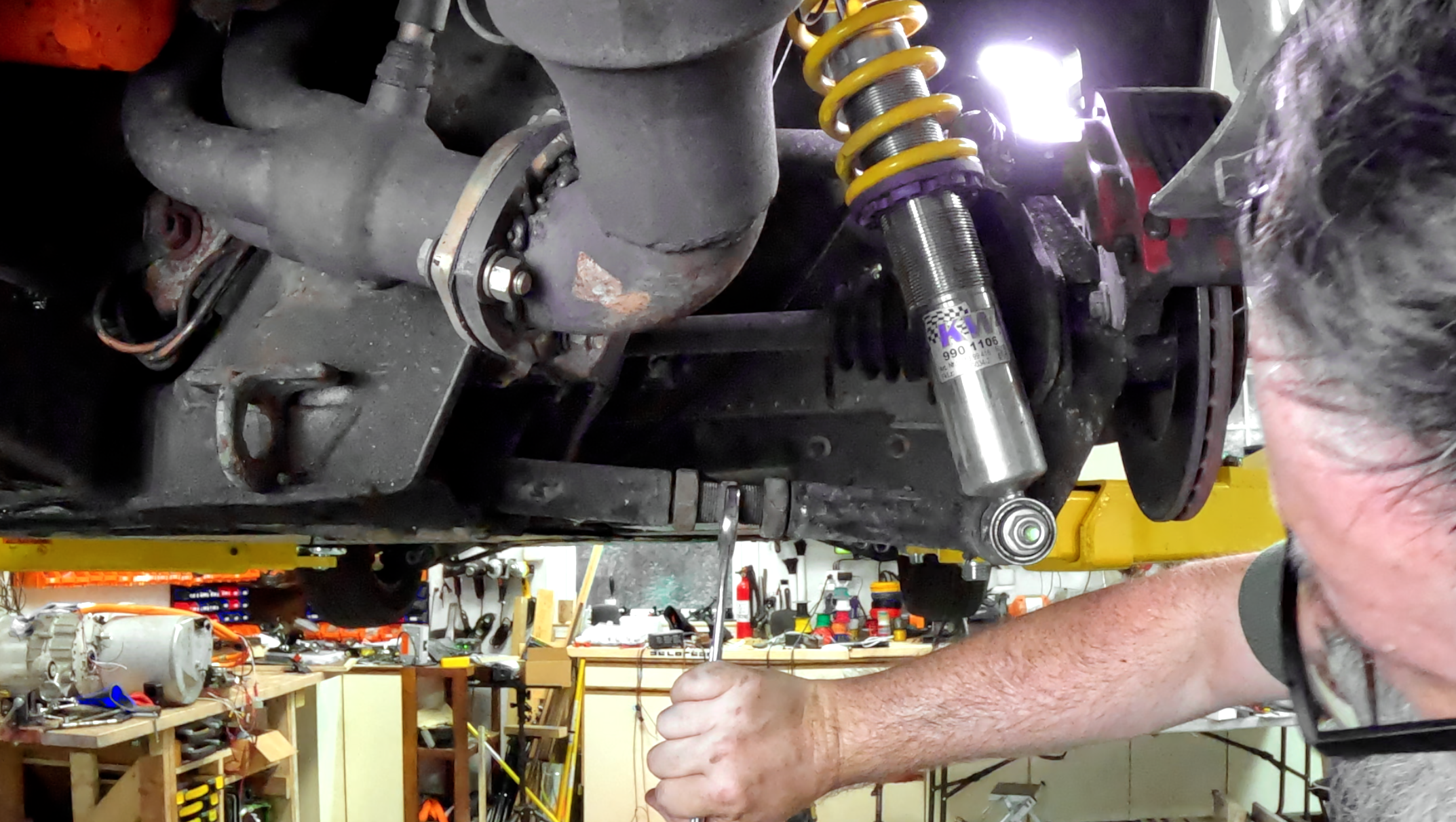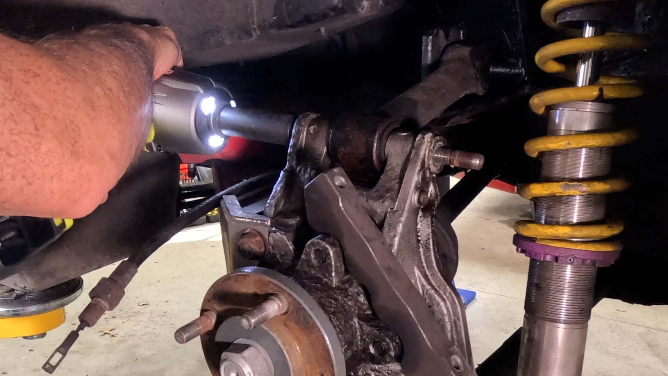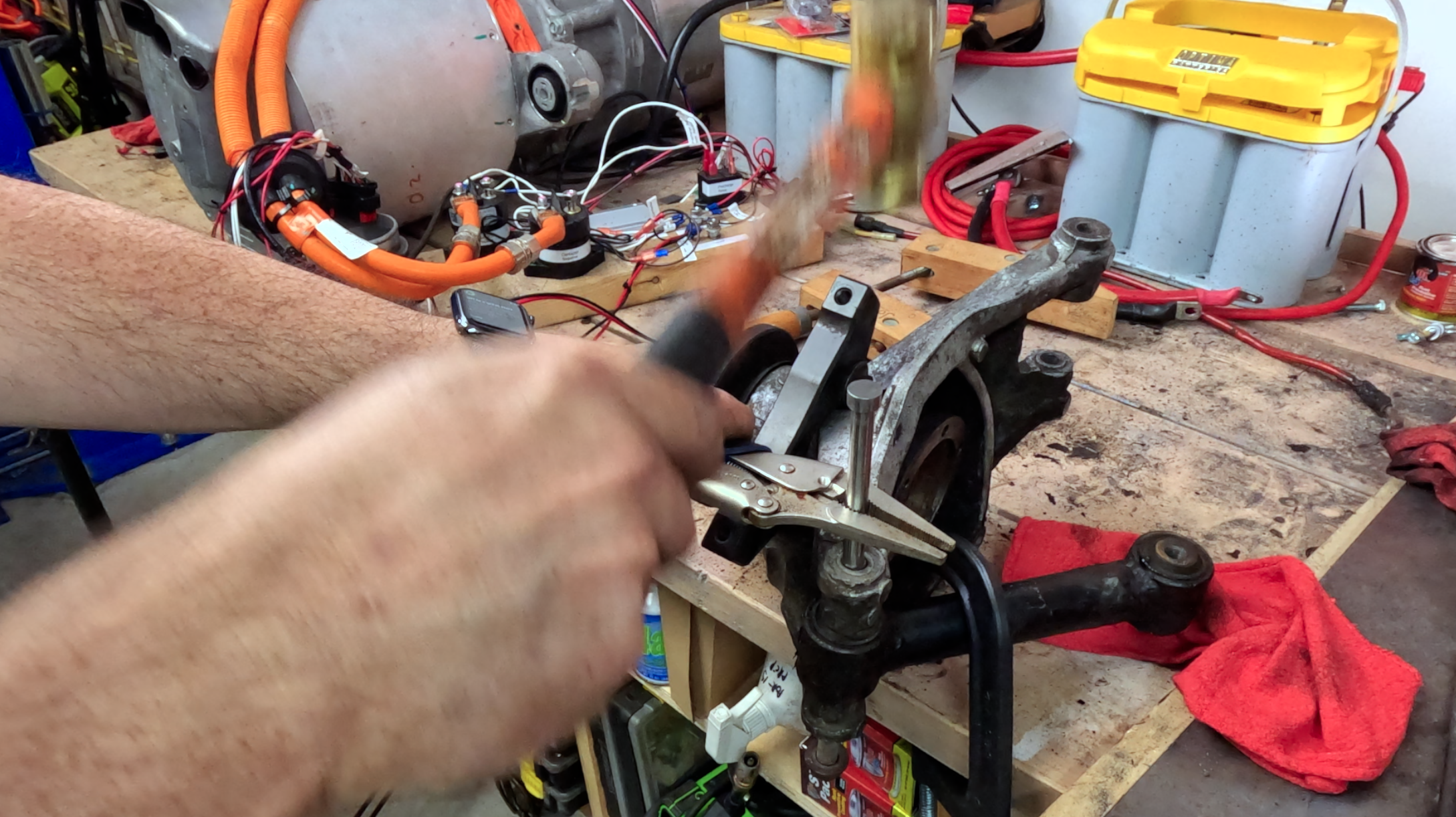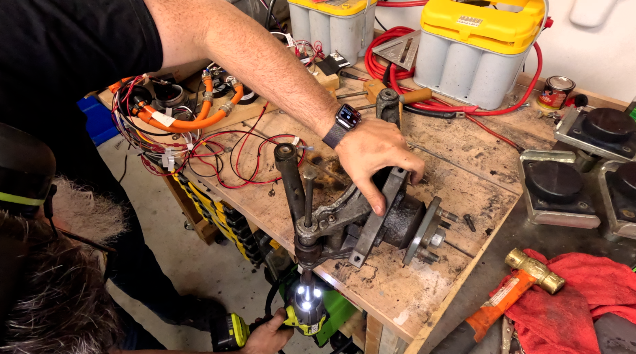 One last turn with the impact wrench on the bench before finally tapping it out.