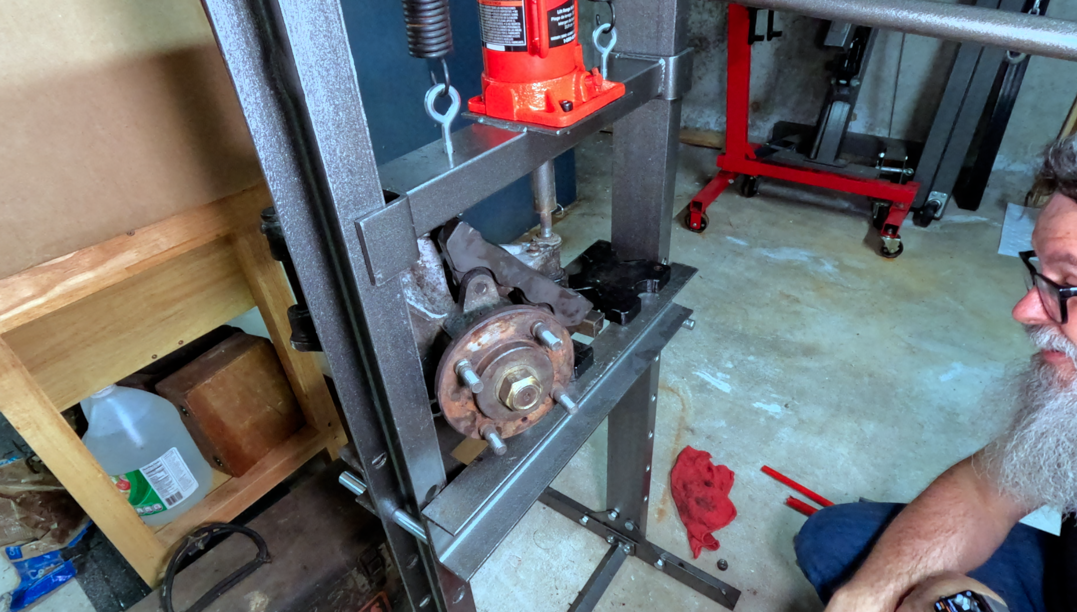 I loaded it up with penetrant and gave the pivot bolt a turn with a cheater bar. Thankfully, it moved, but I couldn’t get it to shift with a hammer.